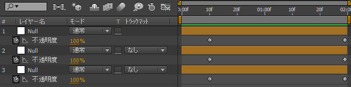 上の図の状態から、レイヤーとキーフレームの状態を下の図のように変える最短の手順を示せ。