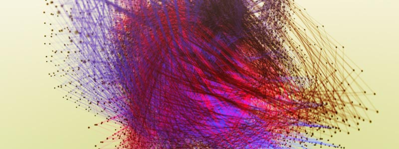 中心点に向かって放射されるParticularと、Particularの発生点を基準に出るPlexusで作った作例。 |