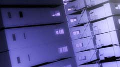 平面で作ったボックスが関連性を持って動いて、カメラがそれを追っている。 |