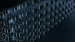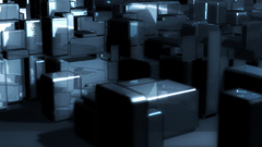 平面に囲まれた空間で動き回る複数の箱の集合体。 |