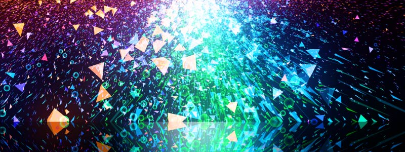 色と形状を変えながら中心と周辺を往来する複数のシェイプレイヤー。 |