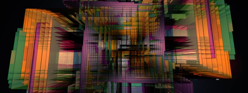 角度とサイズ違いの大量の長方形で作る模様。 |