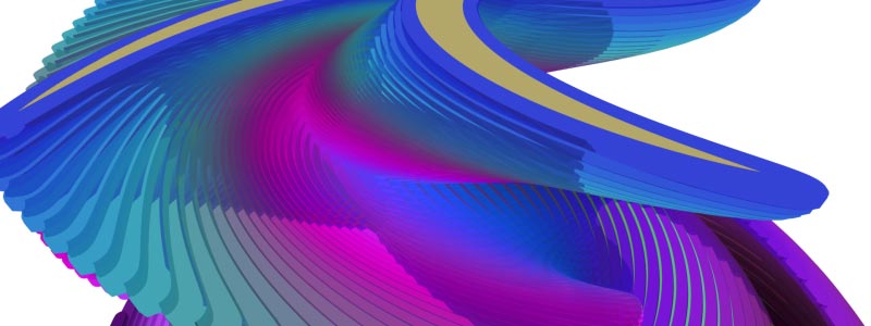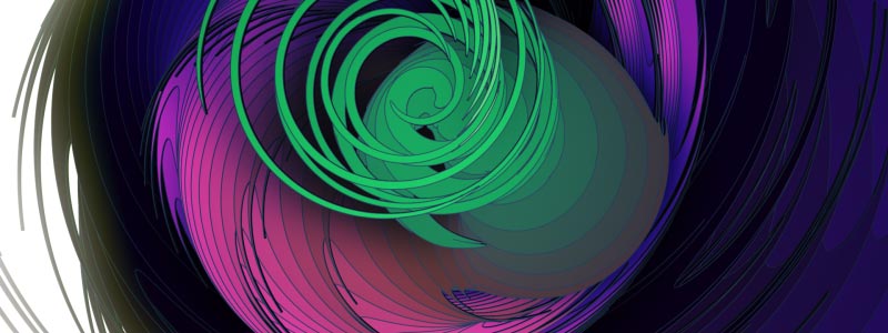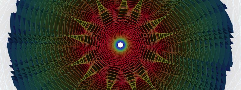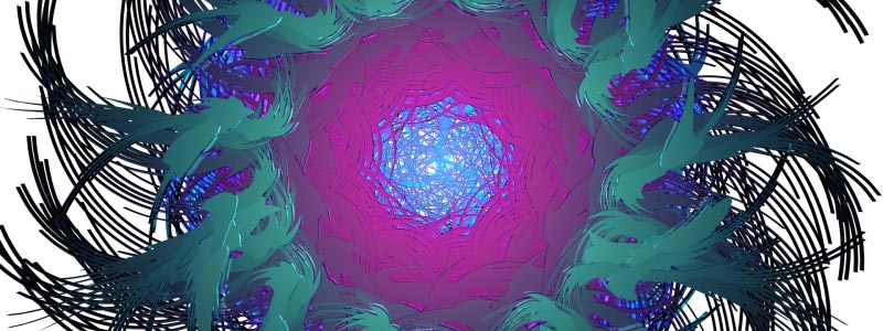 作例465:様々な色の線が少しづつ曲がりながら移動や回転をする作例